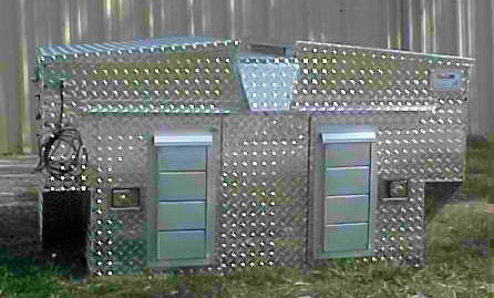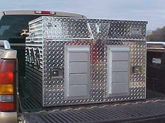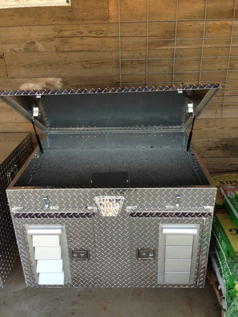 45"wide x 30" deep x 29" tall . All welded aluminum construction ,washout floors with rubber mats. $995
